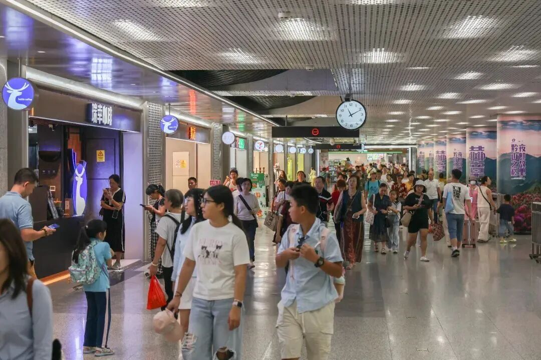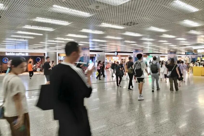 一号线与八号线换乘通道汇聚了瑞幸咖啡、7‑Eleven、粤・优鲜购、谭木匠、趣味娃娃机等多家特色便民商铺,出行消费体验全新升级。